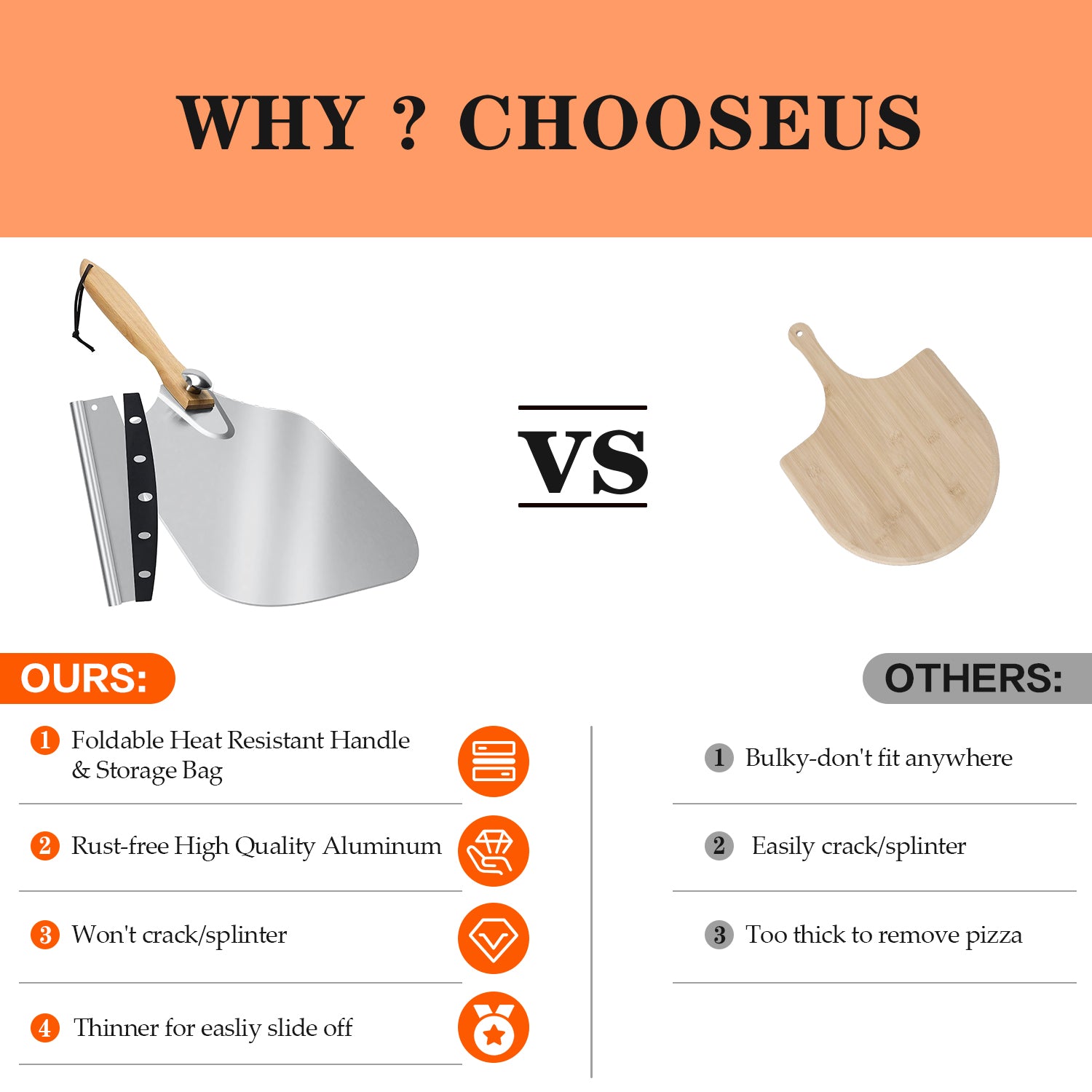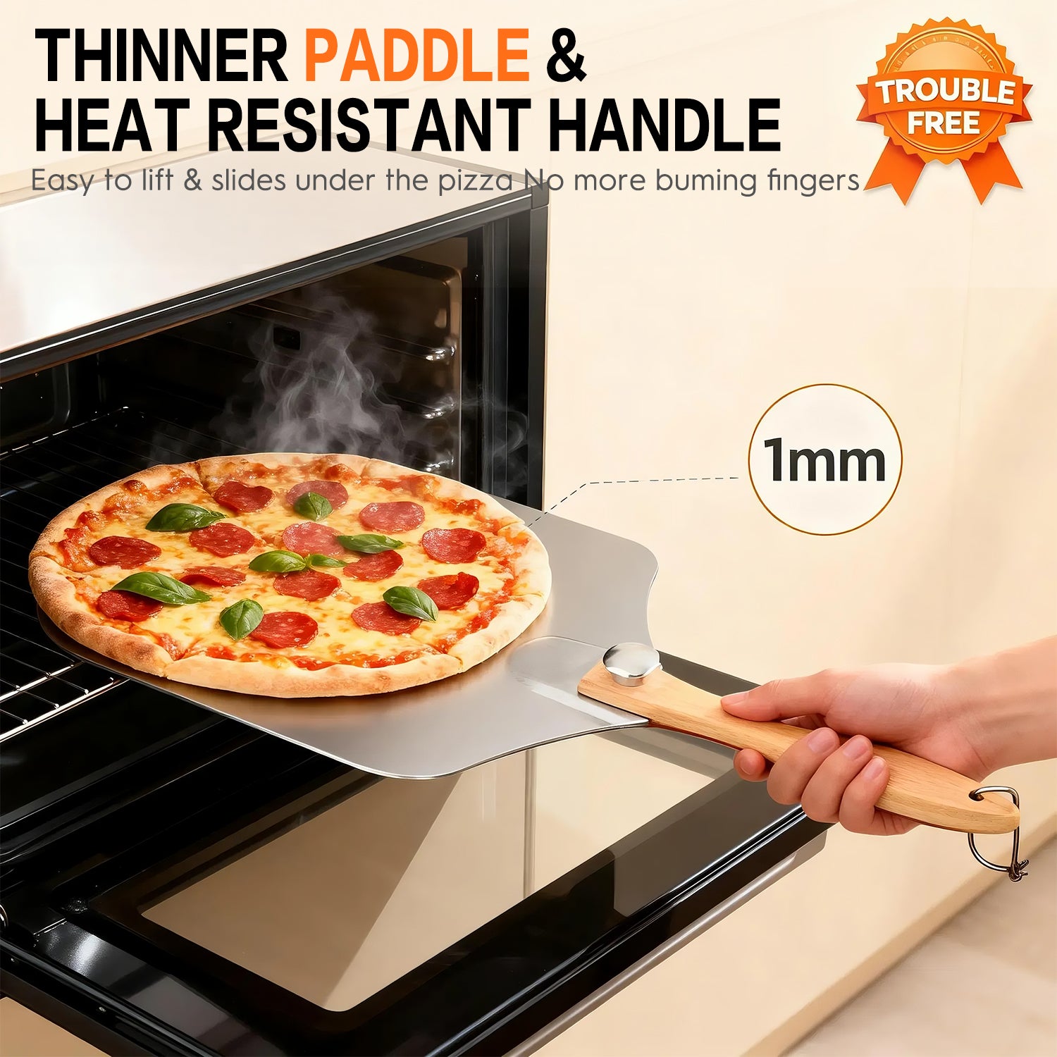 - 【Easy to use】:Wooden pizza peel boards are prone to splintering and are not resistant to moisture and other issues, our rust-resistant aluminum pizza is the perfect solution. It's lightweight and so thin that just a little cornmeal on the metal surface of your pizza paddle and your pizza slides off your pizza scraper and straight onto your plate.