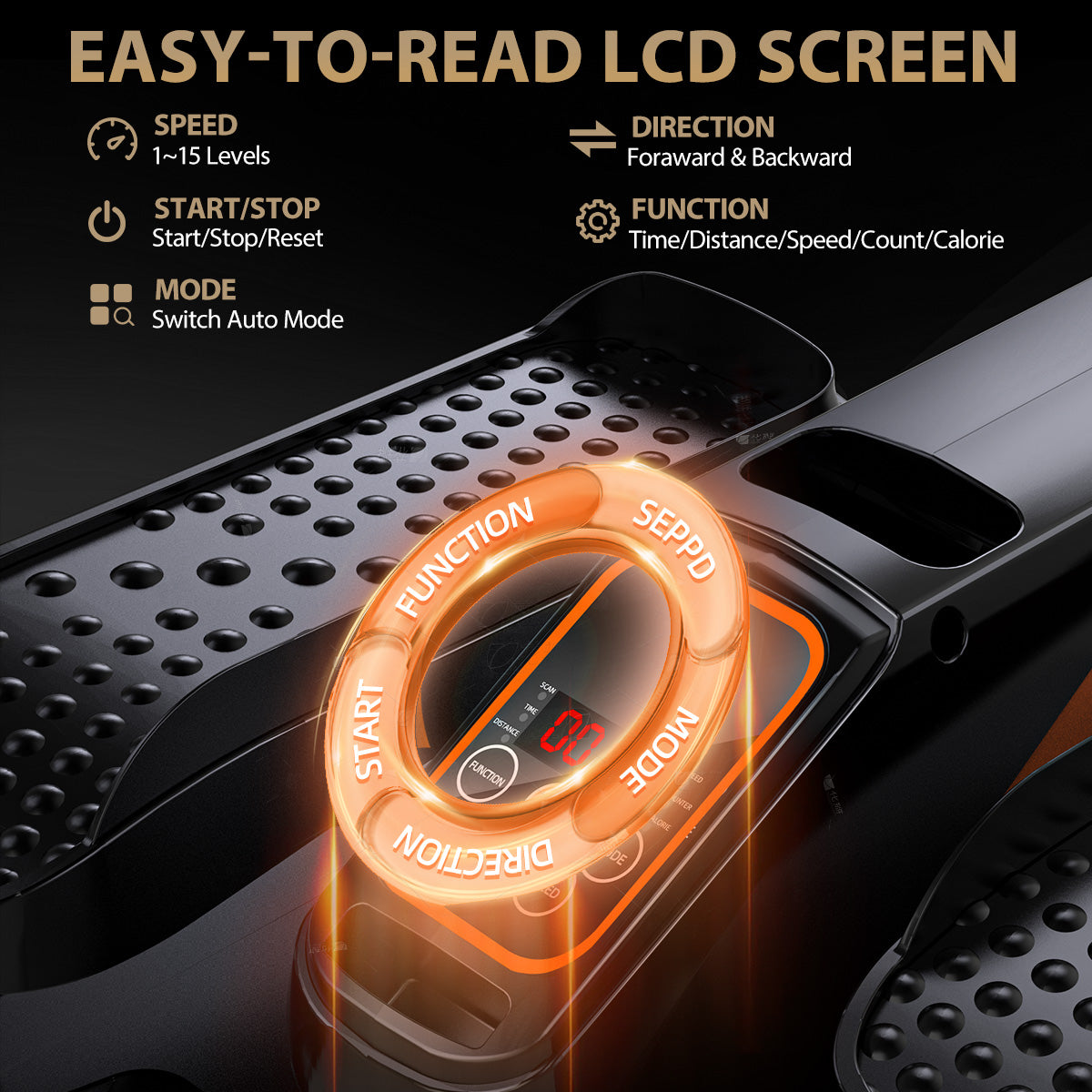 - 【LCD DISPLAY & REMOTE CONTROL】Kaqinu portable under desk elliptical with the LCD display, you can track speed, distance, counter, time and calories in real time. Pedal exerciser for seniors feature with thoughtful remote control allows you to change mode without bending over, reducing strain on your back.(Due to logistics reasons, the remote control is not equipped with batteries, you need to buy it separately)