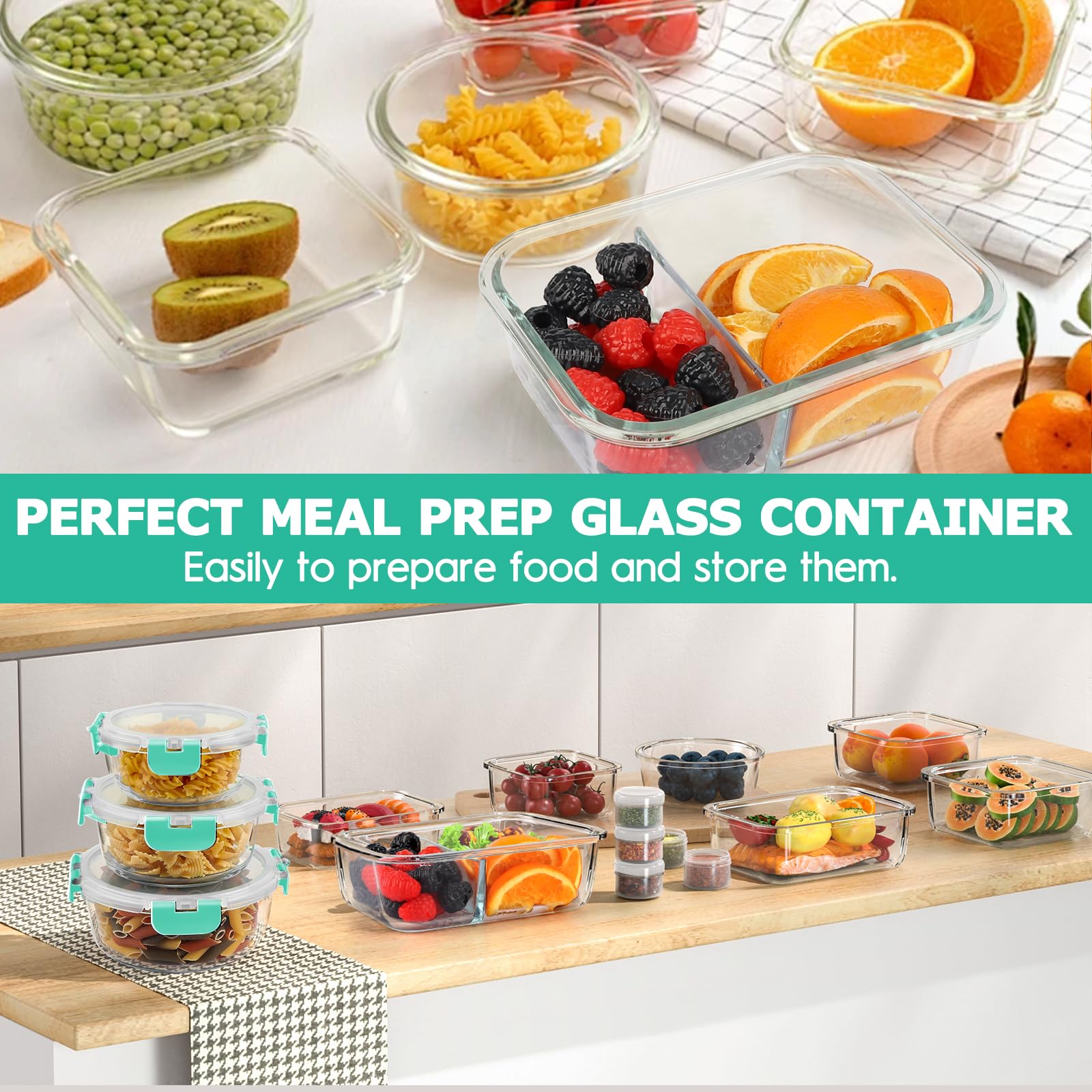 - [Mutil-Purpose To Use]:Not only do these containers excel at food storage, but they also serve as versatile meal prep containers. Whether you are planning your meals in advance or packing lunch for work, our glass food storage containers are the perfect choice. Ideal for families, professionals, and students, providing a versatile food storage solution for everyday use.