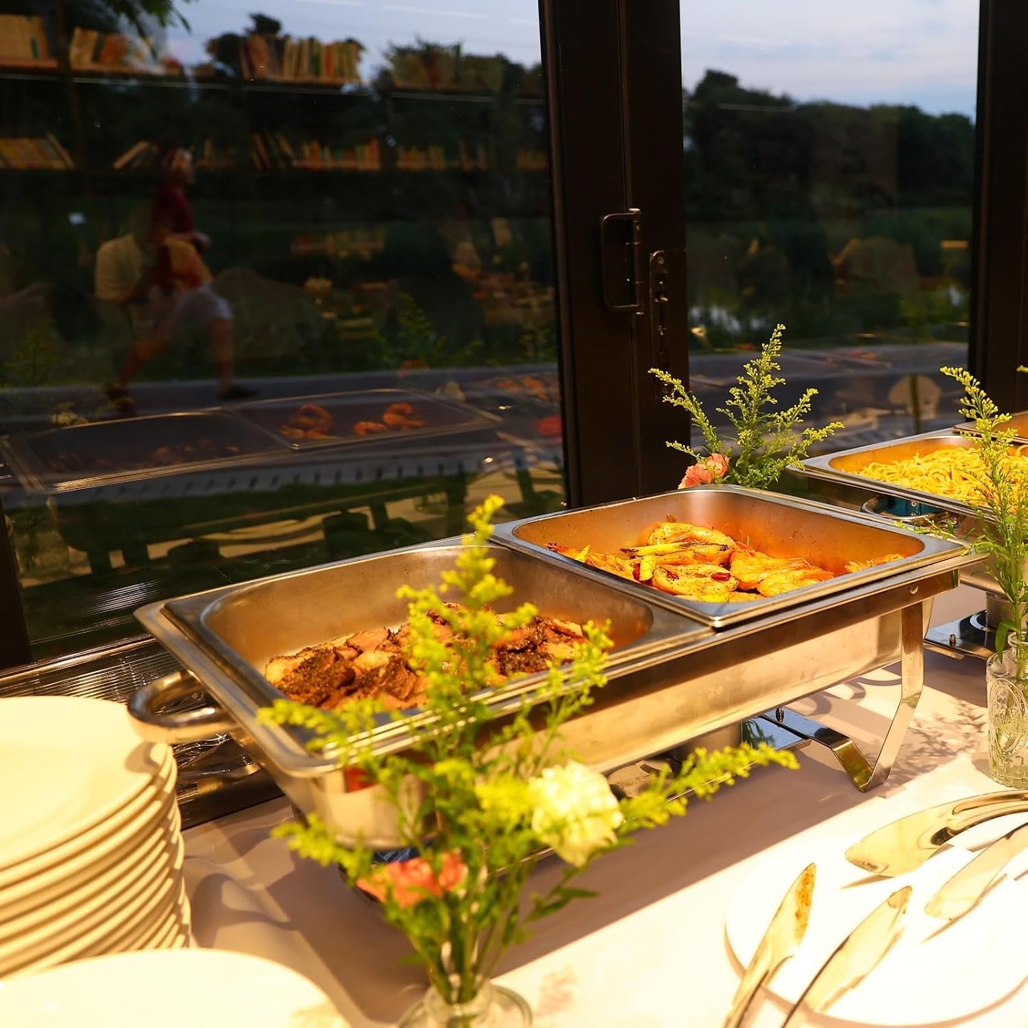 - Excellent food insulation performance:Crafted from premium stainless steel, our chafing dishes for buffet offers excellent food warming performance and durability. Designed with expertise, it harnesses the power of water vapor circulation to guarantee superior insulation and freshness, keeping your food warm and delicious.