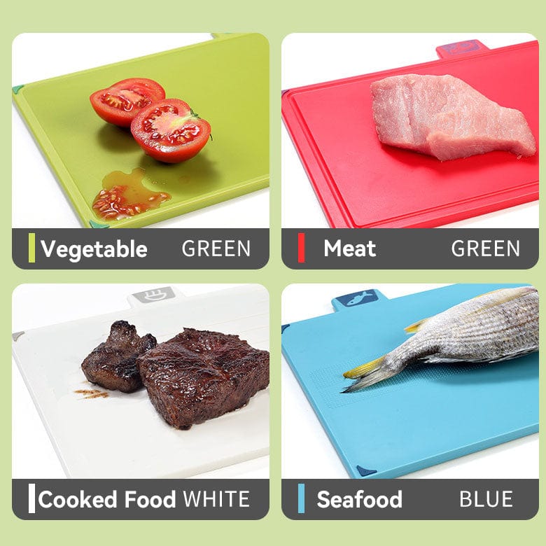 【Index Tabs】Index-style tabs on boards indicate which food type they should be used for - raw meat, raw fish, vegetables, or cooked food.