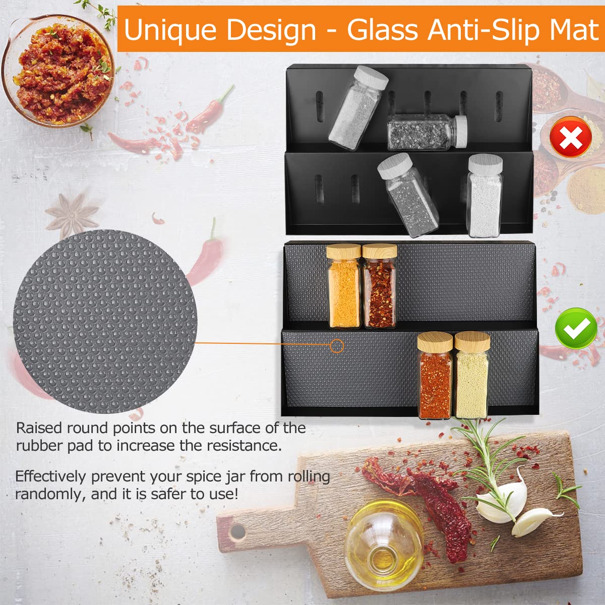 The tiered design provides plenty of storage space, the slim profile fits most drawers. The inclined board design makes it quick and easy to read the labels on spice jars, identify their contents and locate the item you need. And turn any mess of spice in your drawer into an organized masterpiece. Easy to install, just place and stack it in kitchen drawers. Spice drawer organizer dimensions: 13.4" wide x 18.7" deep x 3.2'' high, please measure your drawer before ordering!
